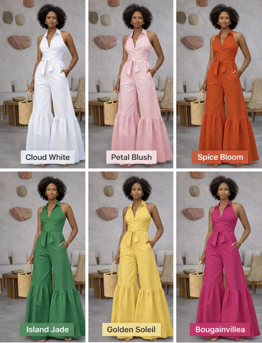 | Colour | Golden Soleil, Spice Bloom, Olive Grove, Island Jade, Bougainvillea, Cloud White, Petal Blush |